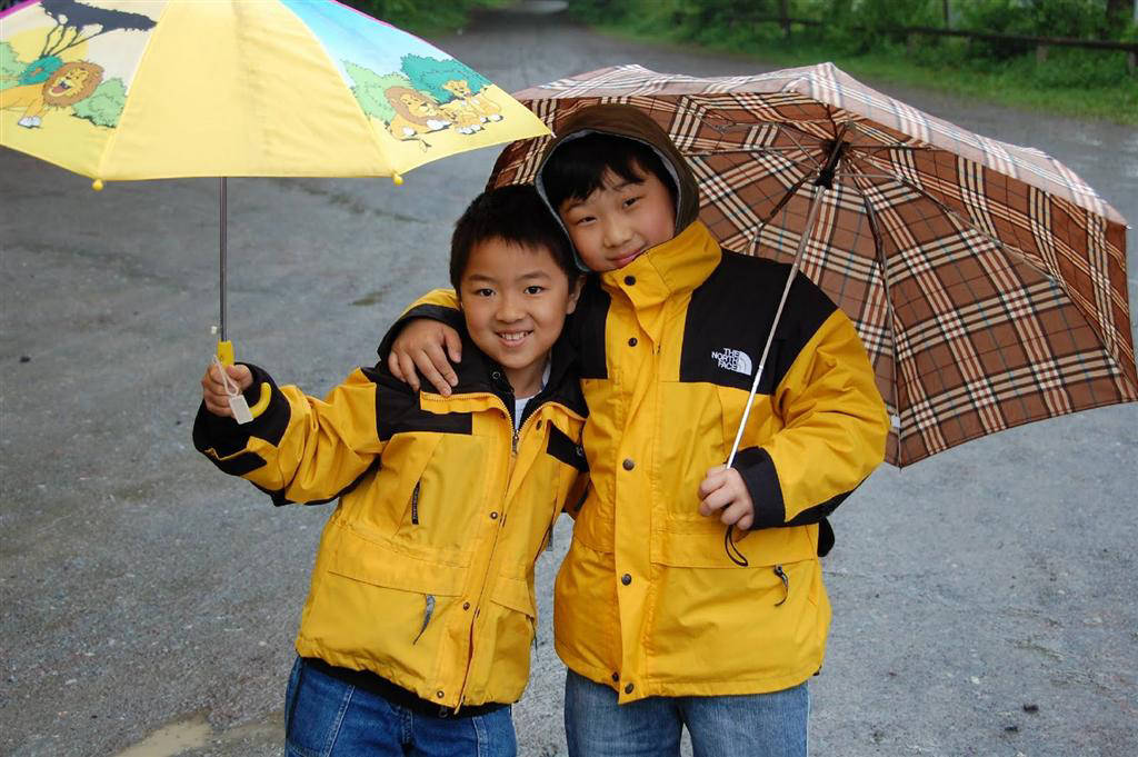 七彩雨伞绿中游,