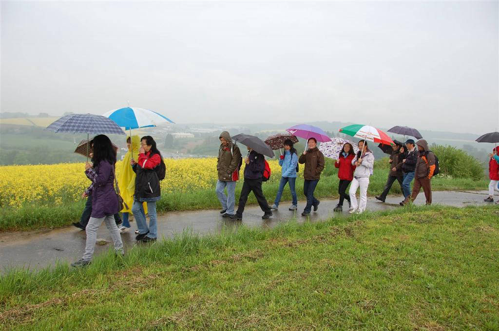 曲径通幽,但见伞花一片。